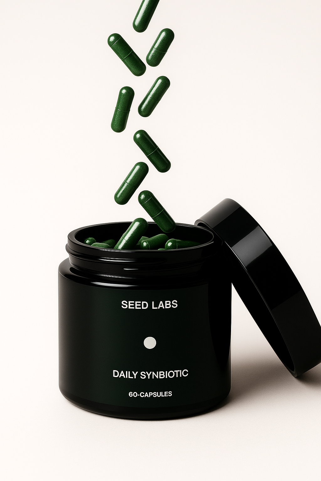 Skip generic probiotics and untested blends. Seed Labs Daily Synbiotic delivers targeted, science-backed support with clinically studied probiotic strains and prebiotics that nurture your gut, skin, heart, and immune health from within. Designed for optimal absorption and stability, each capsule promotes balance, resilience, and everyday well-being. Take daily. Thrive naturally.